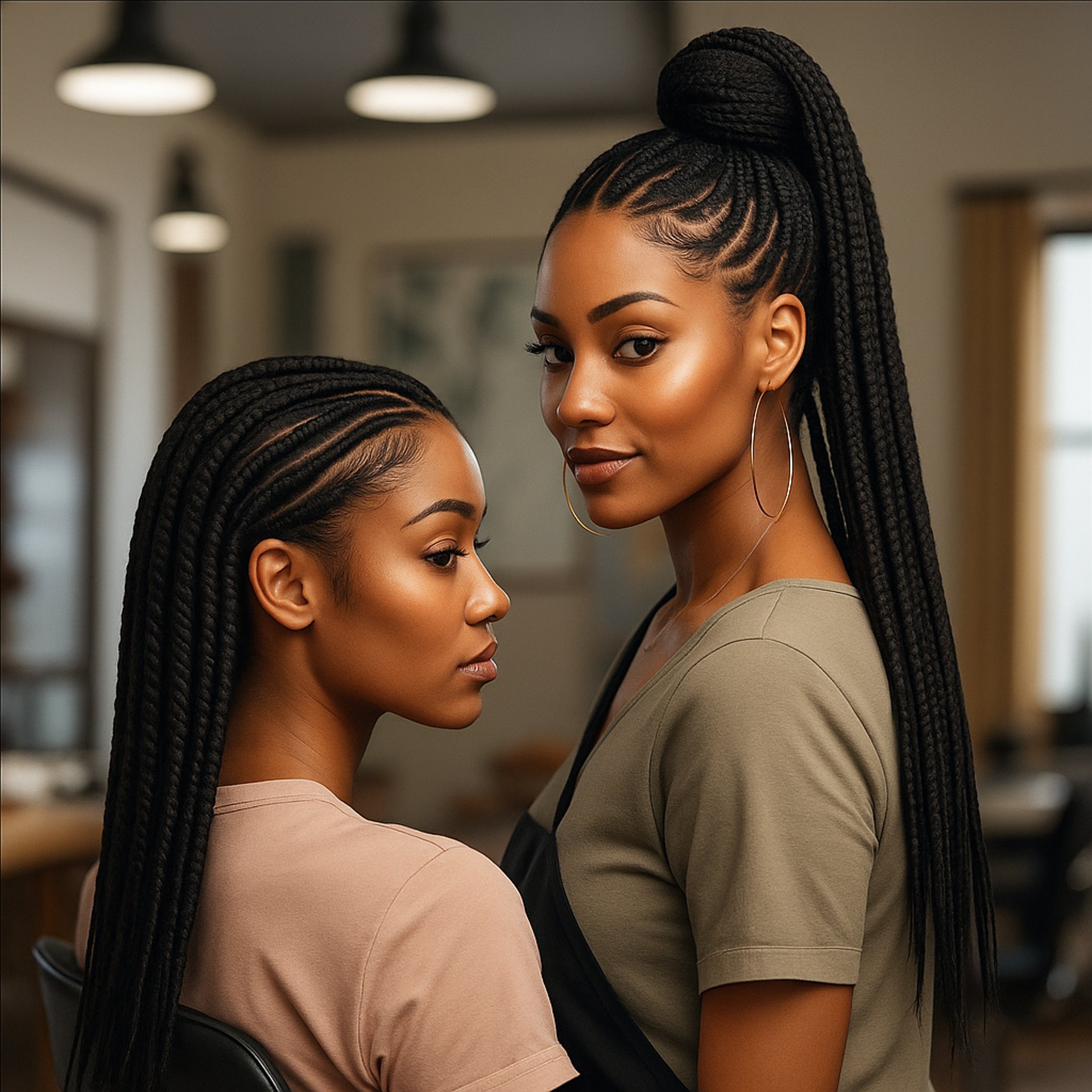 We offer braiding, extensions, micro-links, crochet, wig installs, and maintenance. Same-day and next-day appointments are available.